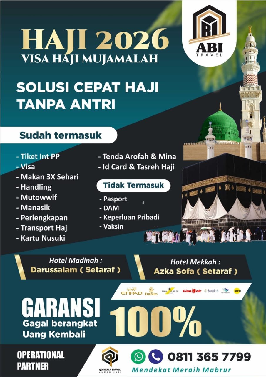 Jumlah visa untuk langsung bisa berangkat Haji 2026 sangatlah terbatas (Hanya 30 Visa Mujamalah).