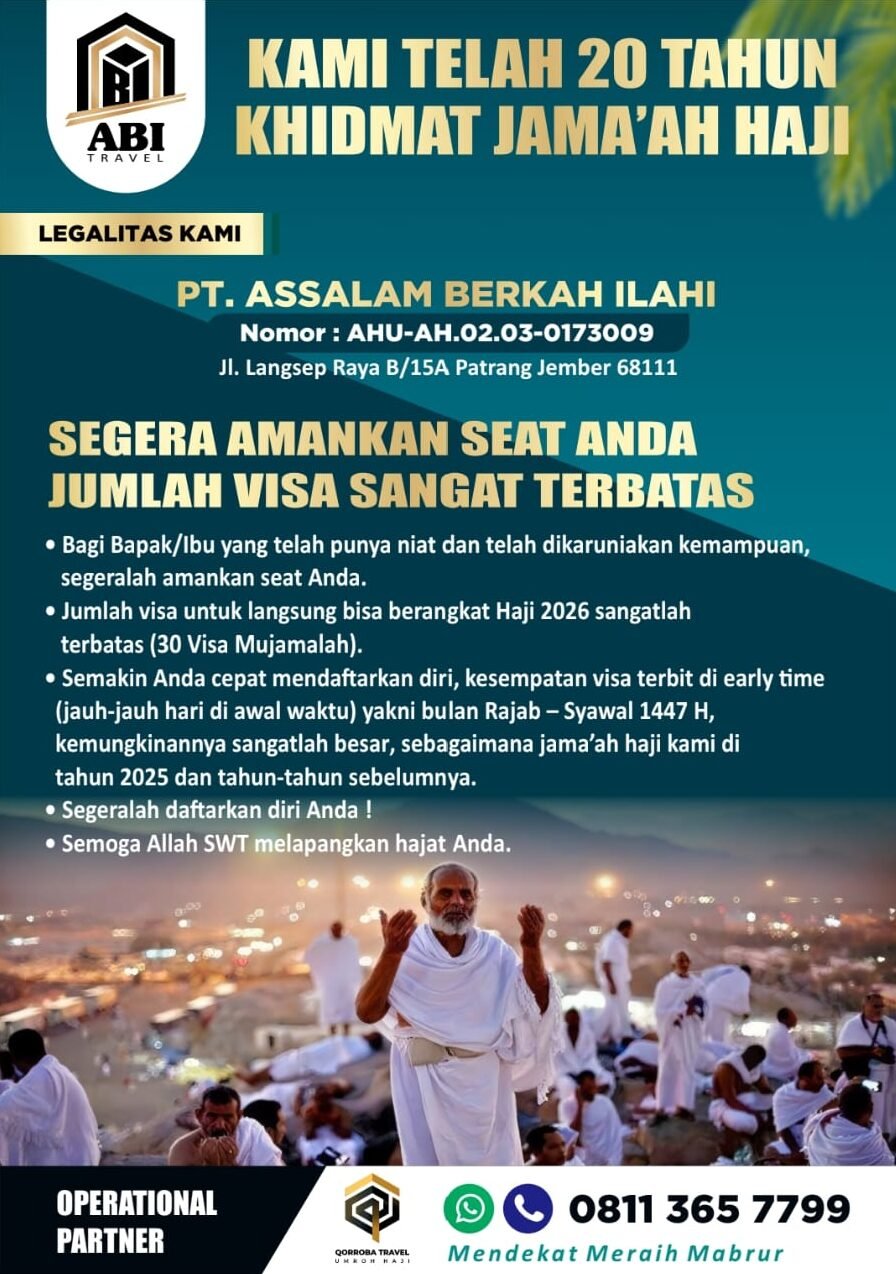 Segeralah daftarkan diri Anda ! Semoga Allah SWT melapangkan hajat Anda sebagaimana jamaʼah haji kami di tahun 2025 dan tahun-tahun sebelumnya.